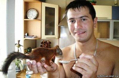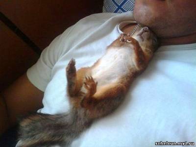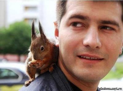 Ответа долго ждать не пришлось: сначала из кармана пиджака показались мохнатенькие кисточки ушей, потом блестящие глазенки, еще мгновение — и забавная белочка оказалась на плече у молодого человека.