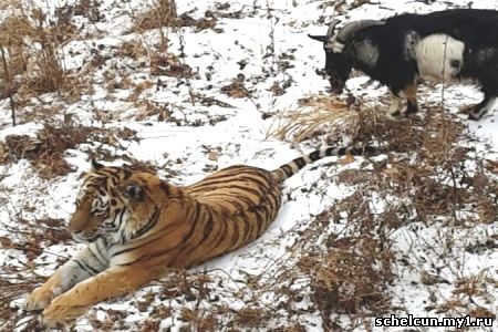 | В Приморье тигр подружился с козлом, предназначенным ему на съеденье
