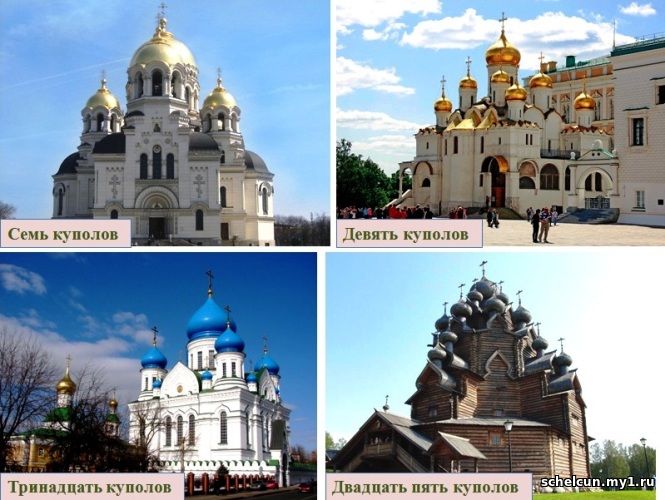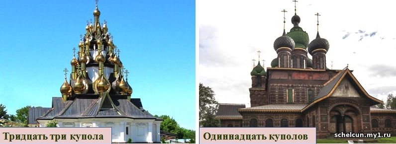 В русской архитектуре встречаются храмы с одиннадцатью (Верхоспасский собор Кремля) и с пятнадцатью (церковь усекновения главы Иоанна Предтечи в Ярославле) куполами, но это скорее исключение из правил.