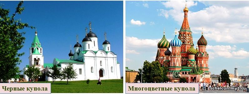 Многоцветные купола в православной традиции напоминают верующим о красоте Небесного Иерусалима. Так выглядят главы храма Спас на Крови в Петербурге и собора Василия Блаженного в Москве. Иностранные путешественники восхищались цветными узорами куполов и сравнивали их с чешуей кедровой шишки, ананаса и артишока. Такой вид главы приобрели после пожара 1595 года — тогда храм восстановили и перестроили. ________________________________________