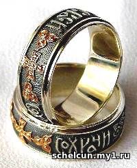 Для православных при ношении кольца есть некоторые допущения. Лица, прошедшие обряд венчания, могут надеть оберег на тот же палец, где носят обручальное кольцо. Совместное ношение поможет верующим, если оба символа освящены и сделаны из серебра. Сочетание золота и серебра является неблагоприятным. В этом случае кольцо с надписью «Спаси и сохрани» следует поместить на большой или указательный палец.