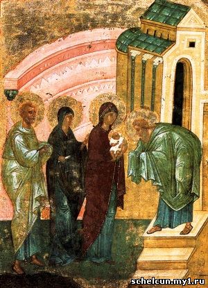 По преданию, когда Дева Мария переступила порог храма с младенцем на руках, навстречу ей вышел древний старец.
