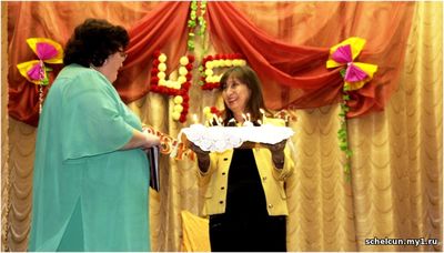 Вручение торта заведующей клуба Ю. В. Пьянковой