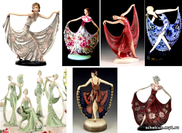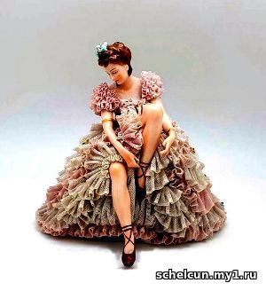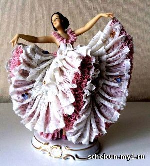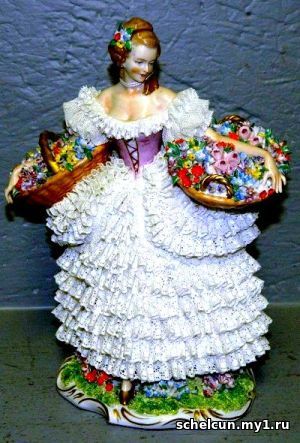 Каждый, кто впервые видит подобные статуэтки, думает, что эти пышные кружева, к которым так хочется прикоснуться, просто надеты сверху на статуэтки. Но на самом деле это не так — они тоже фарфоровые и очень хрупкие, так что дотрагиваться до них нежелательно.