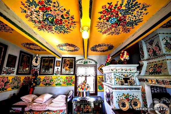 Так как же началась эта традиция в Залипье (Zalipie). На самом деле, достоверных фактов не существует, однако самая достоверная версия гласит, что местные женщины стали расписывать свои дома изнутри из-за плохой вентиляции дома, когда сажа от печей оседала на потолках и стенах. Такие пятна выглядели неопрятно даже если их отмыть, и чтобы закрасить подобные изъяны, женщины рисовали самые простые рисунки - цветы.