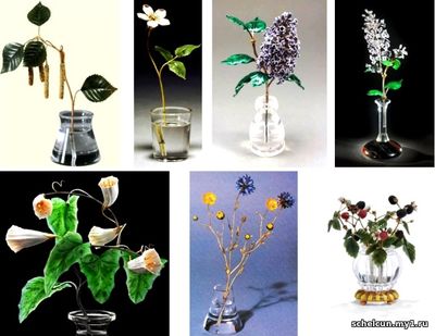 После этого прут нарезают на мелкие пластинки шириной до 6 миллиметров. На срезе такой пластинки, которая и называется муриной, можно увидеть необыкновенно красивый рисунок в виде цветка, ромба, колечка, сердечка с красочными разводами. Множество таких плашек-мурин и наносят путем накатывания на разогретый стеклянный сосуд, который после нужной обработки и становится похож на цветочную поляну.