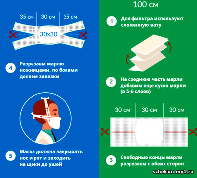 Стирать их следует при температуре выше 60 градусов в течение 30 минут и более, сушить на солнце или в сушильной машине. (В нашем климате вернее будет прогладить сухим раскаленным утюгом – прим. Ред.) Чистую маску – хранить в чистом пластиковом пакете.