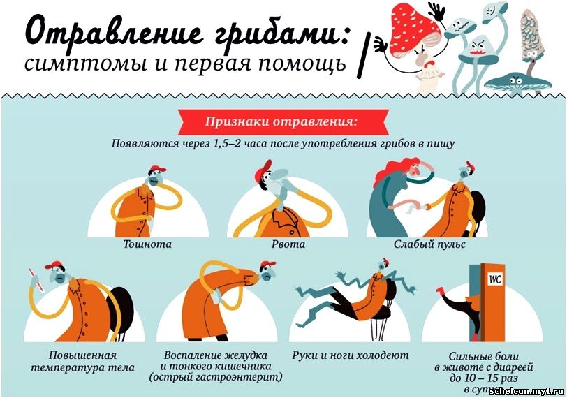 Основные признаки отравления грибами могут появиться уже через 1,5–2 часа после употребления их в пищу.
