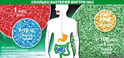 От огромного количества бактерий нам ни холодно ни горячо - их около ста миллиардов, они не вызывают у нас никаких болезней и не приводят ни к каким проблемам. Мы живём с ними как бы в параллельных мирах. Для нас гораздо важнее примерно 400 видов бактерий, обитающих в нашем организме, и прежде всего в пищеварительном тракте. Весят они от 1,5 до 2 кг, и учёные часто называют это сожительство ещё одним нашим органом. И этот орган - жизненно важный, без него нельзя жить, как без сердца или печени. Он играет огромную роль в иммунной защите, обмене веществ и даже в противораковой обороне.