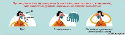При отравлении мухоморами(красным, пантерным, вонючим), сатанинским грибом, ложными опятами возможно: