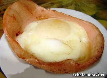 Выкладываем кусок вареной колбасы на сковородку с маслом, обжариваем ее слегка с одной стороны, потом с другой стороны, пока она не образует лодочку. В лодочку разбиваем яйцо. Солим, перчим.